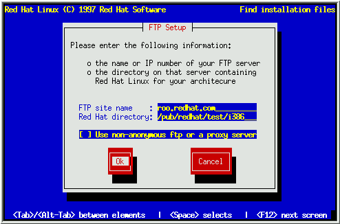 /pub/mirrors/redhat/i386. If you are not using anonymous FTP, or if