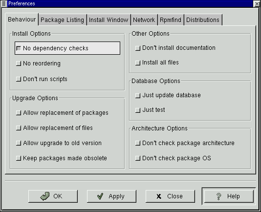 If uninstalling a package would break "dependencies," a dialog will appear, asking you to confirm the deletion. This will occur if you haven't selected the "No dependency checks" box from the Preferences menu (as shown in Figure 6-8).